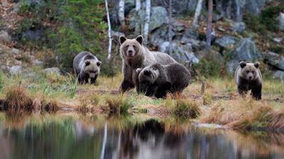 árboles que en su mayor parte permanecen verdes todo el año. Osos pardos,